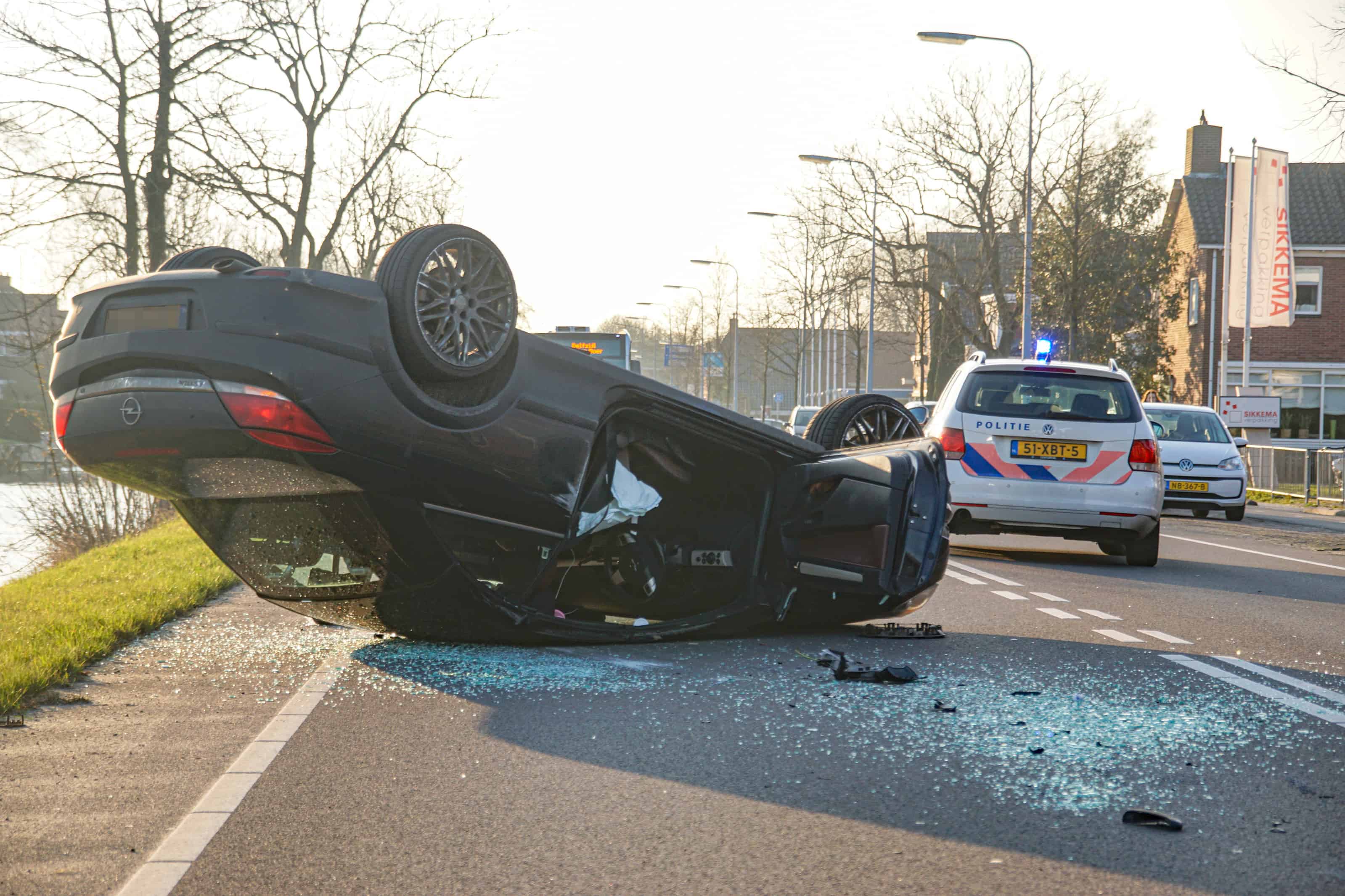 GRONINGEN – Op de Rijksweg in de stad Groningen is vanmiddag een auto over de kop geslagen na een botsing. Eén persoon raakte gewond.