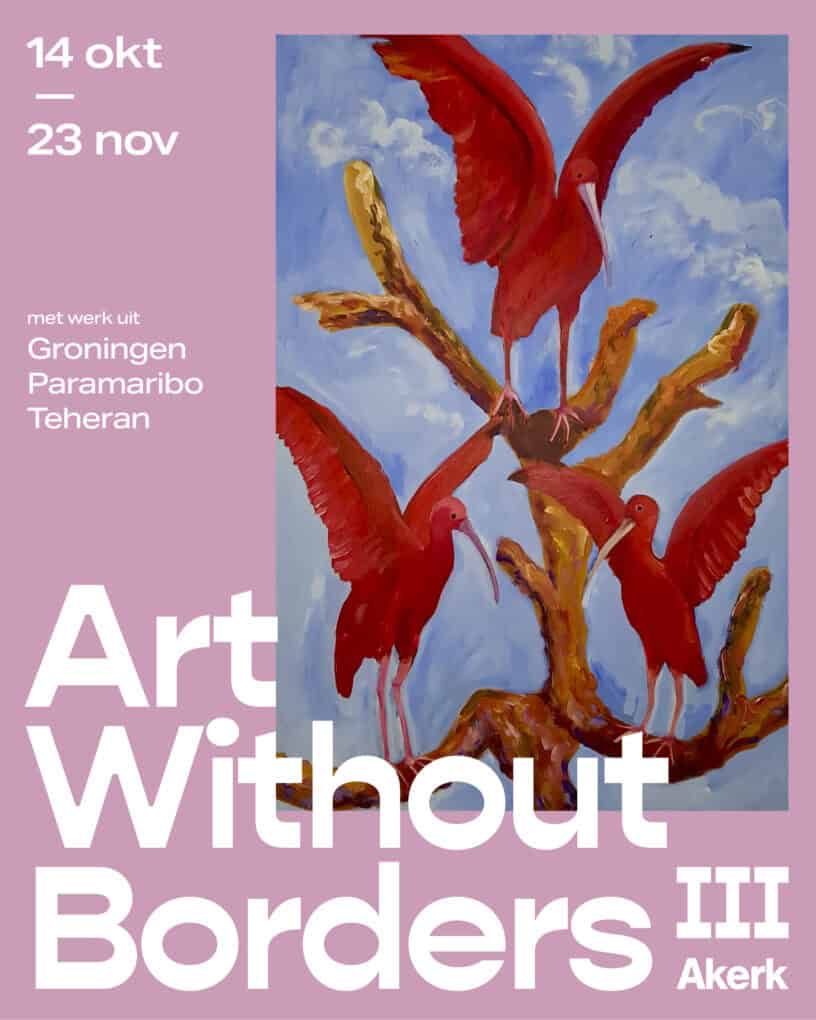 GRONINGEN – Op dinsdag 14 oktober opent in de Akerk in Groningen de internationale tentoonstelling Art Without Borders III. De tentoonstelling, die loopt tot en met 23 november, brengt werk samen van studenten en alumni van kunstacademies uit Paramaribo, Teheran en Groningen. De expositie vindt plaatst in het kader van 80 jaar vrijheid en stelt één centrale vraag aan de deelnemende kunstenaars: “Wat betekent vrijheid voor jou?”