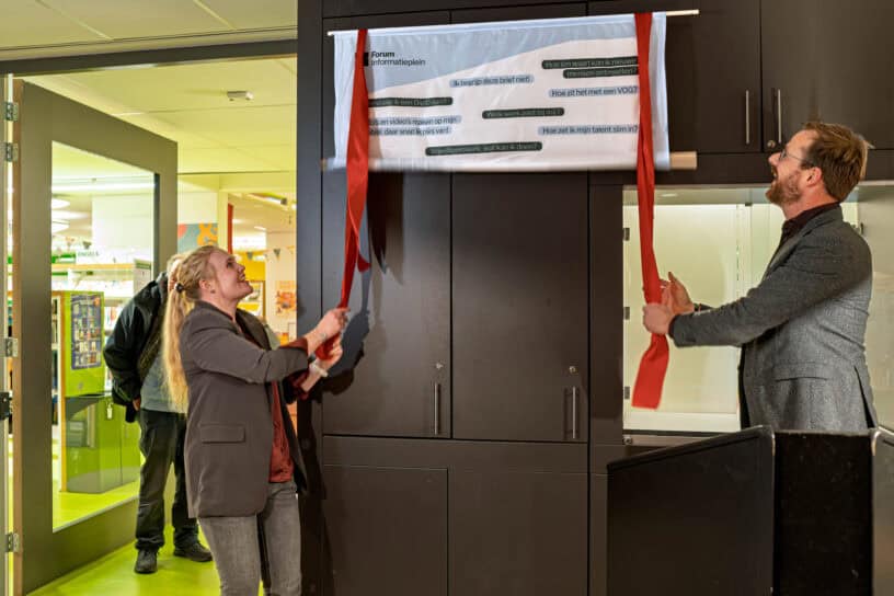 Wethouder Rik van Niejenhuis trok het lint los, waardoor er een groot doek naar beneden viel. “Veel mensen hebben moeite met basisvaardigheden zoals lezen en omgaan met internet. Het Informatieplein biedt Beijumers een laagdrempelige plek waar ze hulp en advies kunnen krijgen om zelfstandig zaken te regelen en actief mee te doen in de samenleving.”