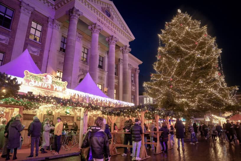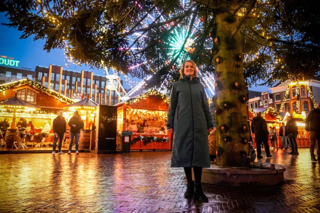 GRONINGEN – Vanmiddag rond 16:30 uur was de officiële opening van Wintergoud door wethouder Carine Bloemhoff op de Grote Markt van Groningen. Ze hield een toespraak en drukte daarna op de rode knop op de kerstboom te ontsteken.