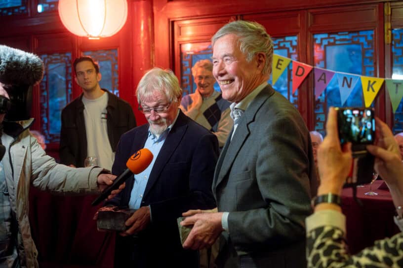 GRONINGEN – Wethouder Rik van Niejenhuis reikte donderdag 27 november de Erepenning van de gemeente Groningen uit aan Douwe Wiersma en Jan Poutsma tijdens hun afscheidsbijeenkomst van de Stichting Behoud Groene Hortus (SBGH) in Haren. Met het toekennen van de Erepenning drukt het gemeentebestuur zijn waardering uit voor hun jarenlange inzet om de Hortus te behouden.