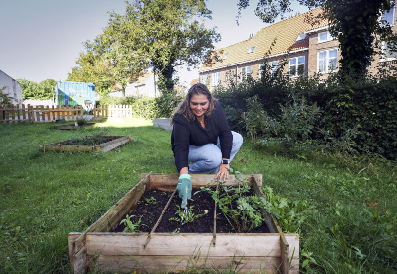 “Ik heb deze baan voor een jaar en mag het invullen zoals ik het wil”, vertelt ze. En dat betekent dat ze voor het grootste gedeelte doorgaat met wat ze al deed. Samen met buurtgenoten legde ze een moestuin aan bij de speeltuinvereniging. Daar groeien niet alleen groenten, maar vooral gesprekken.