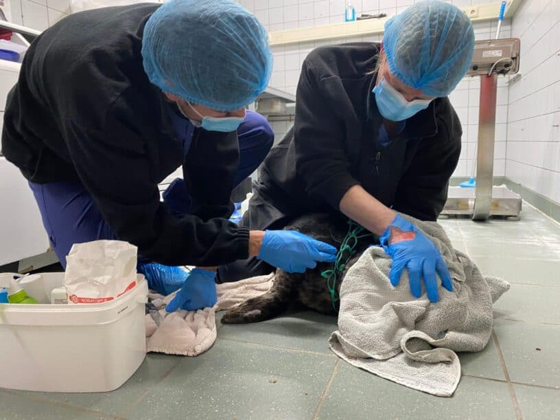 Bij de intake van het dier bleken de verwondingen wonderwel niet ernstig. Het net had zijn nek nog niet doorgesneden, en zijn herstel verliep goed. Na twee nachten in de opvang mocht hij daarom weer terugkeren naar de Waddenzee – precies waar hij thuishoort.