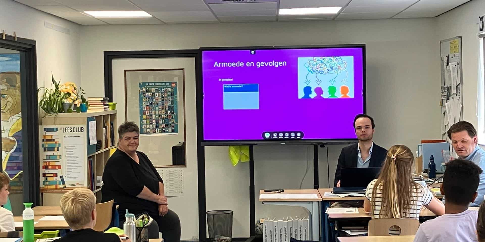 “Je hebt te weinig geld.” “Je hebt het moeilijk met geld.” “Je kunt niet naar het zwembad of mee op schoolreis.” De leerlingen van groep 7 van de Sint Vitusschool wisten goed te omschrijven wat armoede is. Justin Spoor van Solidair Groningen & Drenthe begeleidde de les. Grietje Boonstra uit Wildervank vertelde uit de praktijk hoe zij met armoede te maken had gehad. Ze was slachtoffer van de Toeslagenaffaire en moest als gevolg daarvan met twee dochters van € 600 in de maand rondkomen. Dat zorgde in het gezin voor schaamte en stress.