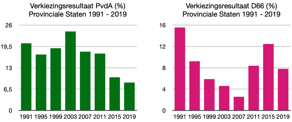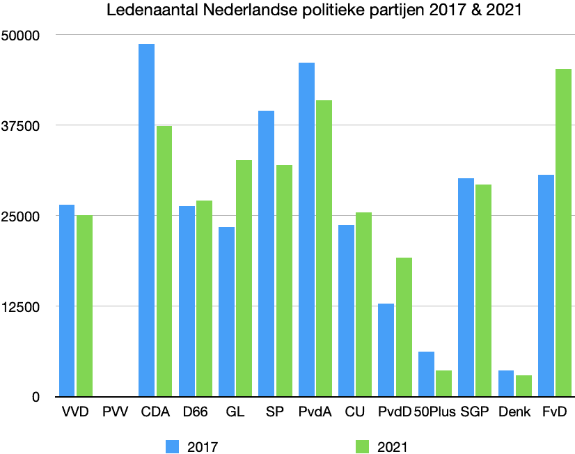 Evenals de VVD, hebben de partijen CDA, PvdA, D66 en SP op lokaal, provinciaal en/of Tweede Kamerniveau veel steun verloren bij de laatste verkiezingen. Van deze partijen was alleen bij D66 en CDA sprake van een toenemend aantal zetels tijdens de laatste Tweede Kamerverkiezingen. 50Plus is voor het grote publiek uit beeld verdwenen sinds het vertrek van Henk Krol, waardoor het niet onwaarschijnlijk is dat deze partij op punt van verdwijnen staat. Van deze zeven partijen, die voor de motie vaccinatiepaspoort hebben gestemd, kon alleen GroenLinks op alle 3 niveau’s rekenen op forse winst tijdens de laatste verkiezingen. Maar hoelang dit in stand blijft is maar de vraag, omdat al hun ‘groene’ plannen in de praktijk alleen maar leiden tot milieu- en horizonvervuiling, creatief ‘gitzwart’ milieuboekhouden en onderaan de streep desastreuze effecten voor milieu en klimaat tegen een forse lastenverzwaring voor vele huishoudens in Nederland.