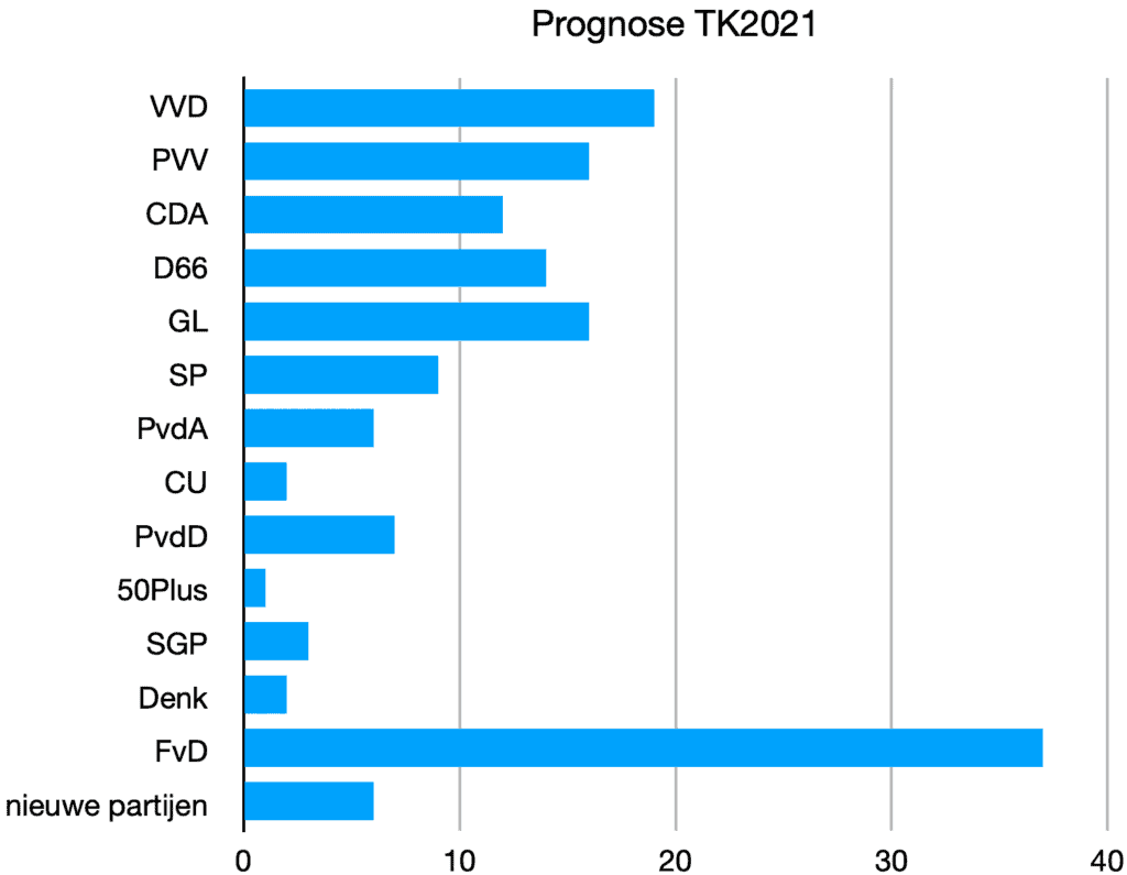 Op basis van de ledenaantallen voor politieke partijen, de verkiezingsuitslagen van eerdere verkiezingen, de groeiende maatschappelijke onrust, de ‘Wat stem je’ peiling en uitgaande van een eerlijk verkiezingsverloop op 17 maart, lijkt een verkiezingsr esultaat waarbij Forum voor Democratie de meeste stemmen zal behalen het meest voor de hand liggend.