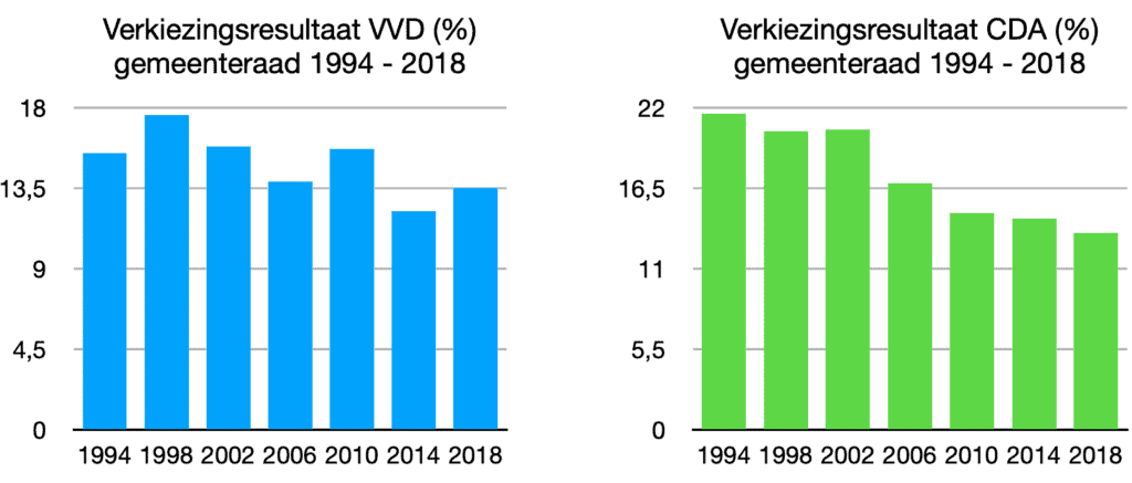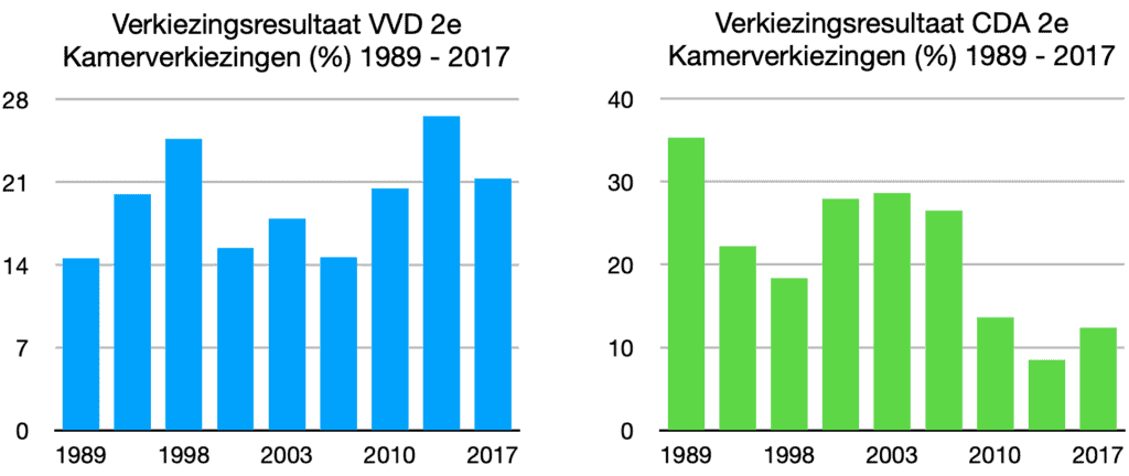 Opmerkelijk is ook dat Rutte in 2010 als premier aantrad. In 2006 verloor de VVD namelijk nog zes zetels onder zijn leiding als lijsttrekker en kreeg Rita Verdonk als nummer 2 op de lijst bijna 70.000 meer voorkeursstemmen dan Mark Rutte zelf. Zijn aantreden als premier heeft voor de partij vanaf 2011 op lokaal, provinciaal als Rijksniveau vooral geleid tot zetelverlies. Tijdens de laatste gemeenteraadsverkiezingen zat de VVD weer enigszins in de lift.