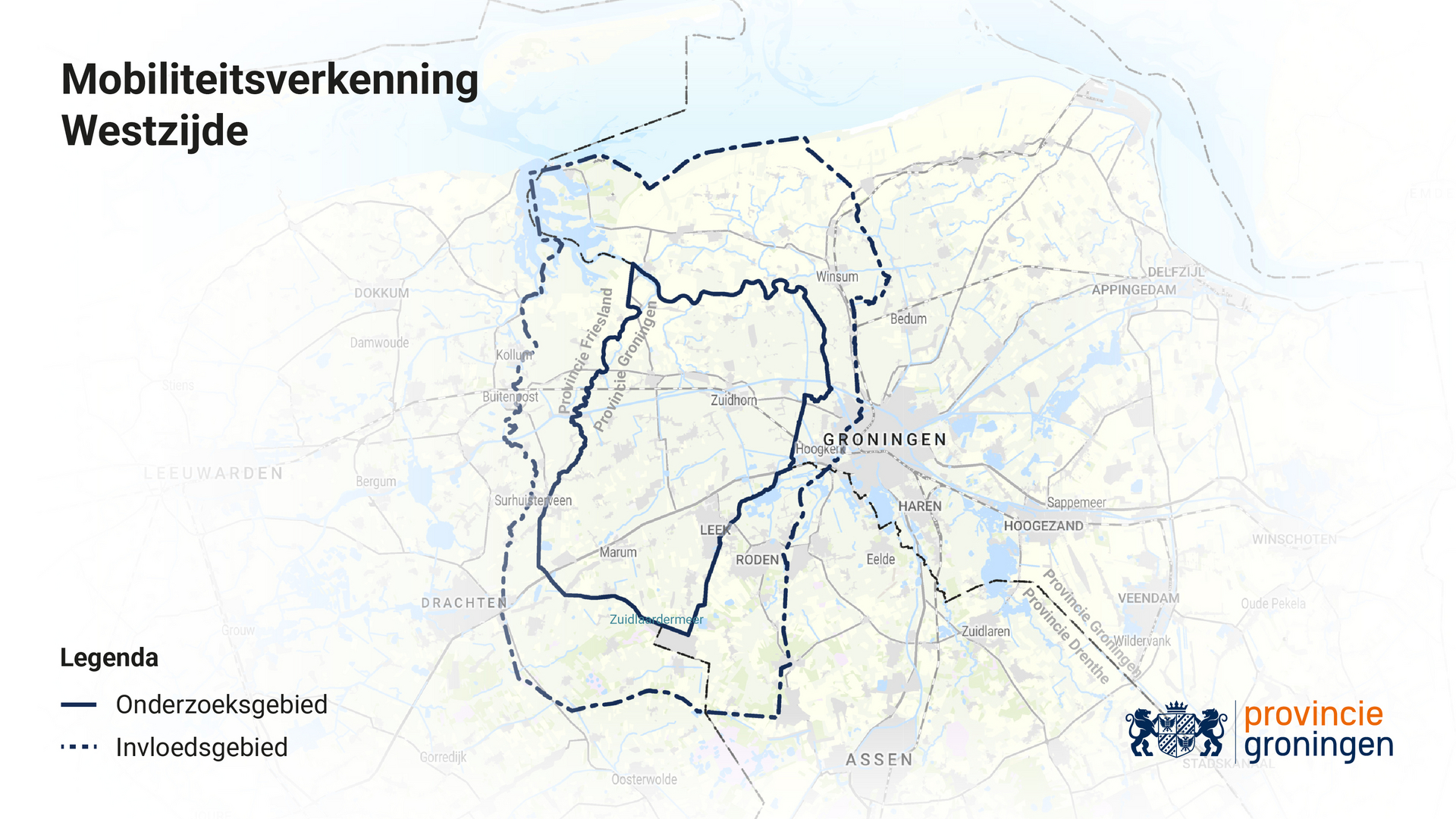 De mobiliteitsverkenning richt zich op de gemeente Westerkwartier (onderzoeksgebied) en een ruimer gebied daaromheen (invloedsgebied). Ontwikkelingen buiten de gemeente kunnen namelijk invloed hebben op het verkeer binnen Westerkwartier. Adviesbureau Sweco voert het onderzoek uit in opdracht van provincie en gemeente, en betrekt daarbij verschillende partners.