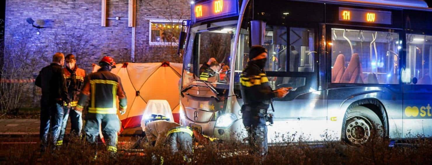 Maaltijdbezorger meters meegesleept na aanrijding met bus