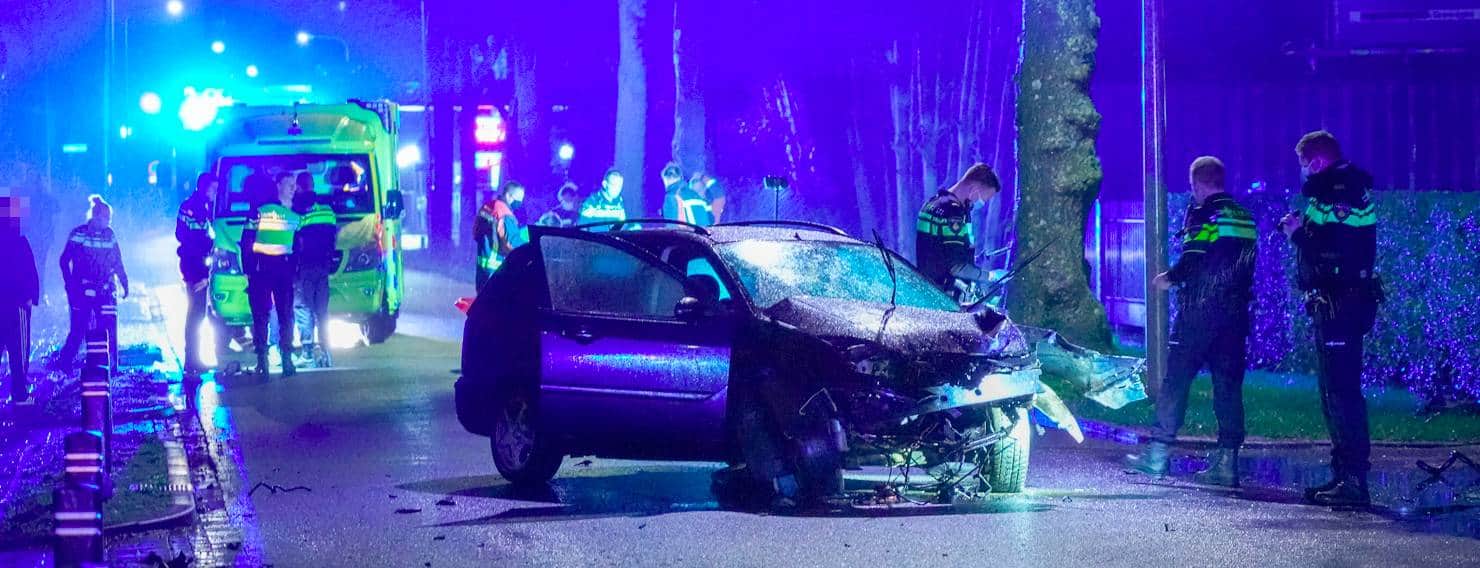 Auto botst tegen boom op Pop Dijkemaweg