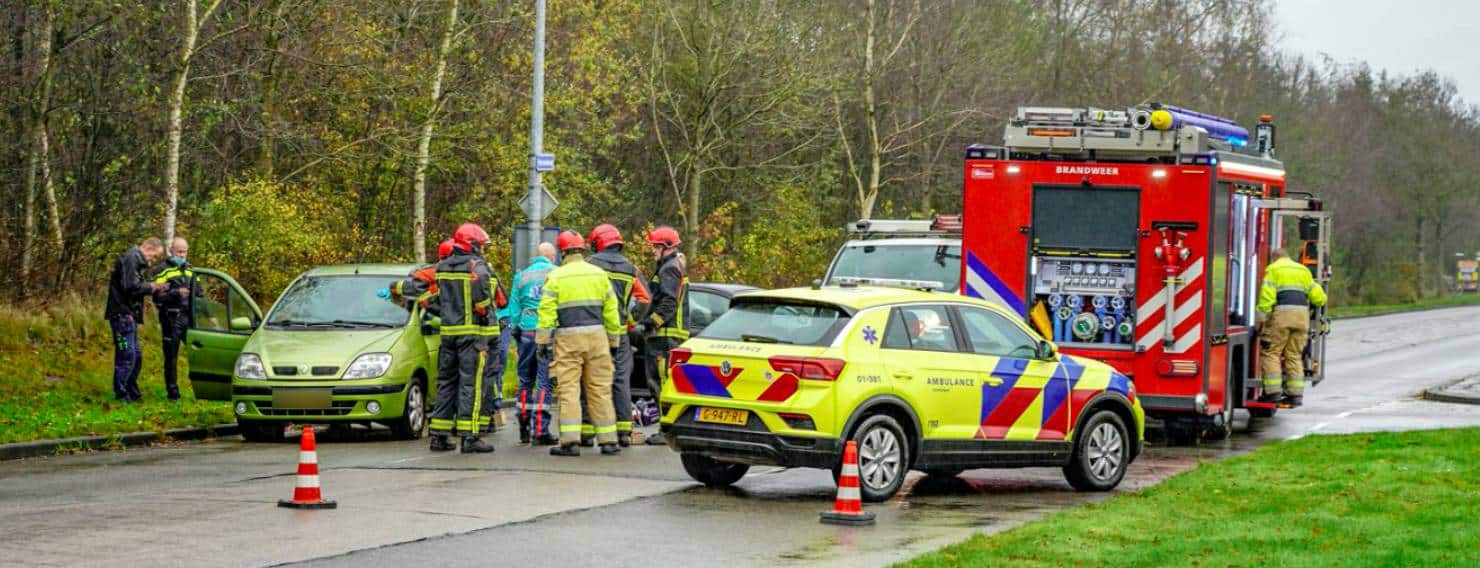 Automobilist klem in auto na botsing op Paterswoldseweg