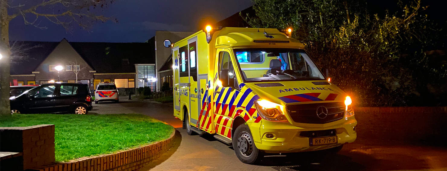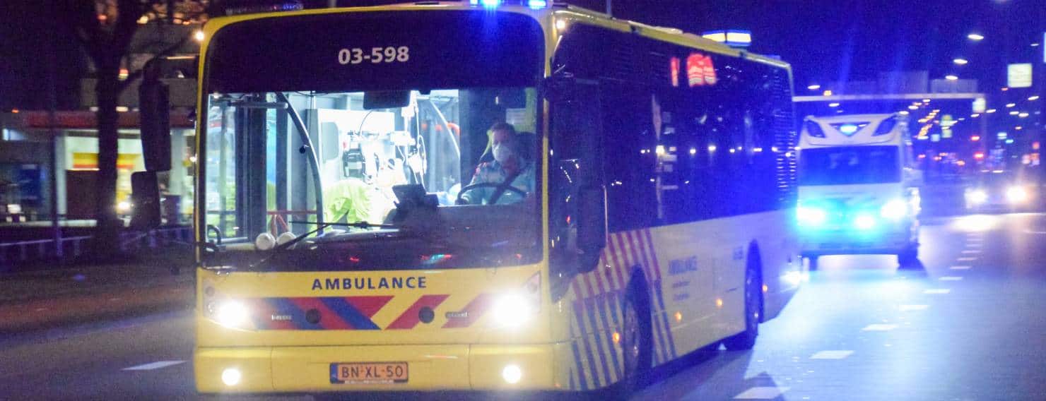 Ambulancebus brengt coronapatiënten naar UMCG in Groningen