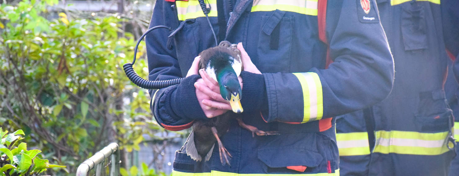 Brandweer bevrijdt eend uit gaas in Groningen